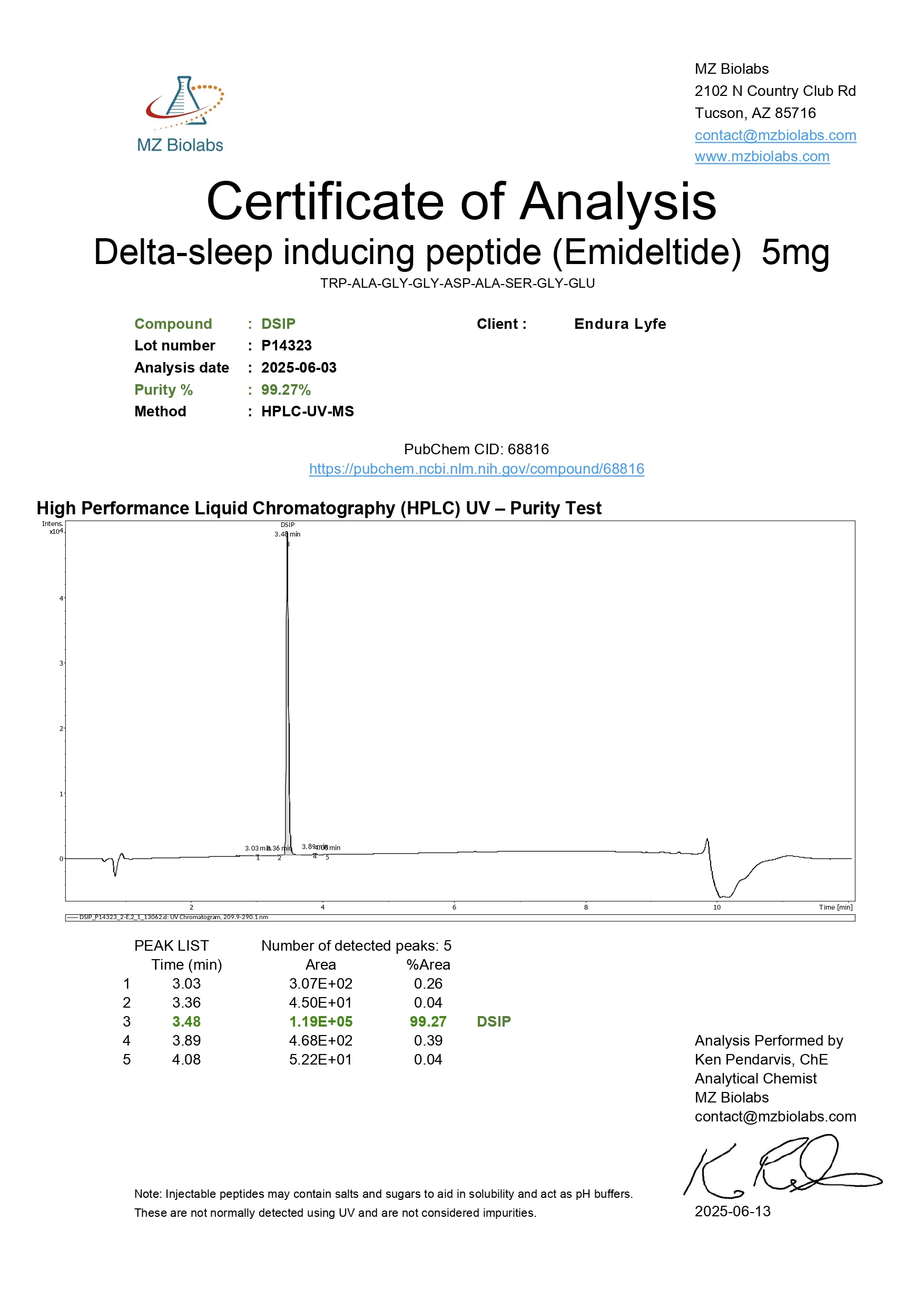 DSIP (Delta Sleep-Inducing Peptide) is a unique neuropeptide extensively studied for its influence on sleep regulation, neuroendocrine balance, and stress adaptation. Originally isolated from the hypothalamus, DSIP has attracted attention in neuroscience for its ability to modulate slow-wave sleep, promote restful sleep patterns, and aid in recovery from physical and psychological stressors. Research indicates that DSIP may interact with endogenous opioid systems, support hormonal homeostasis, and even play a role in the body’s adaptive response to chronic stress. Endura Lyfe supplies DSIP at ≥98% purity, ensuring dependable results in advanced neurobiology and sleep science research. Laboratories around the world are utilizing DSIP to explore novel therapies for insomnia, sleep disorders, and neuroendocrine dysregulation, reinforcing its place as a valuable asset in the field of peptide research.